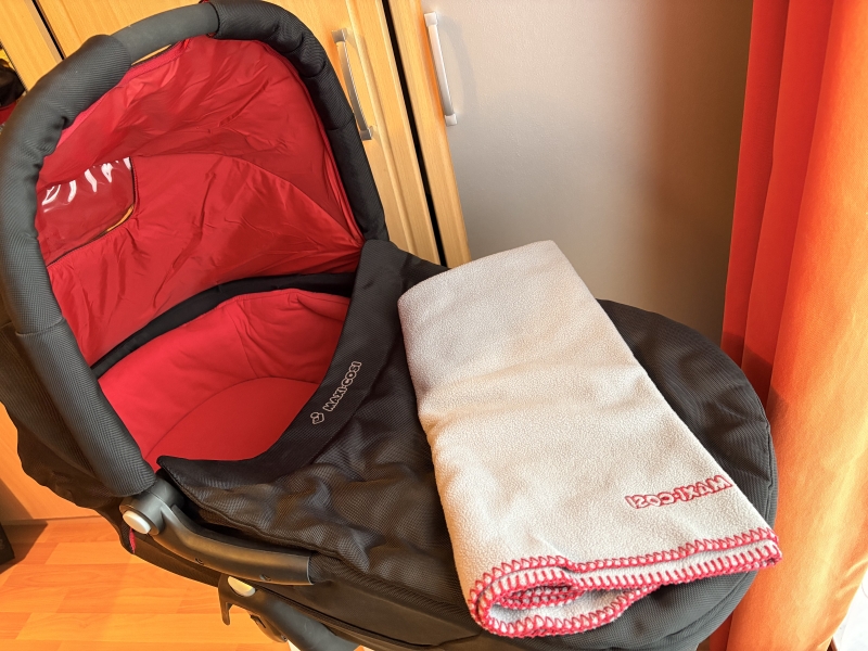 En très bon état. Poussette, nacelle, chancelière, couverture et protection pluie.