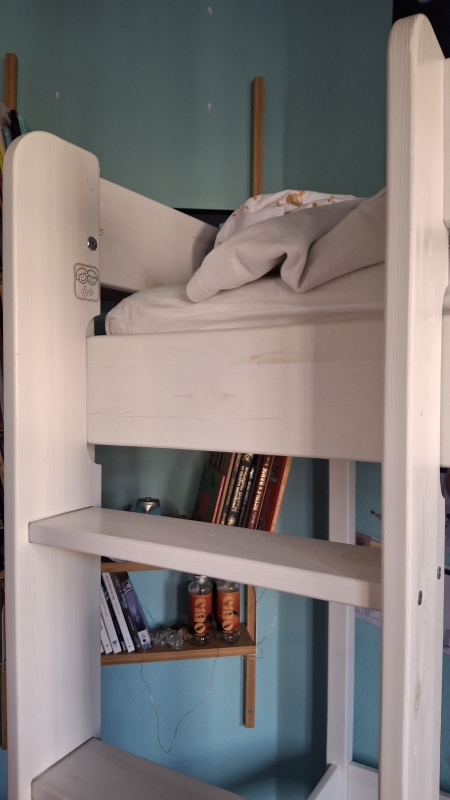 Lit surélevé, idéal pour chambre d’enfant ou adolescent, avec les lattes fixées pour servir de sommier. Matelas non inclus.