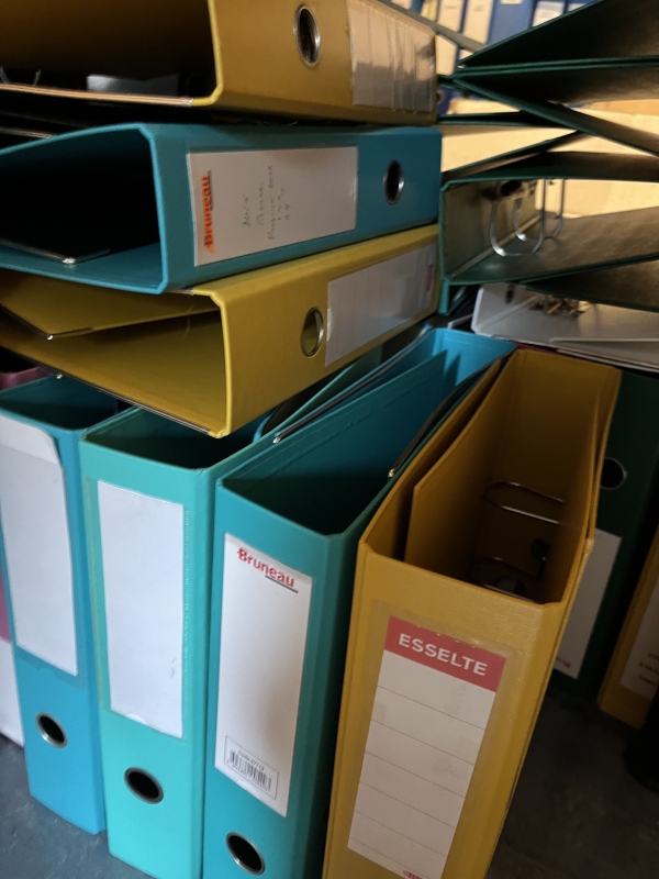 Une bonne centaine de classeurs de couleurs diverses.