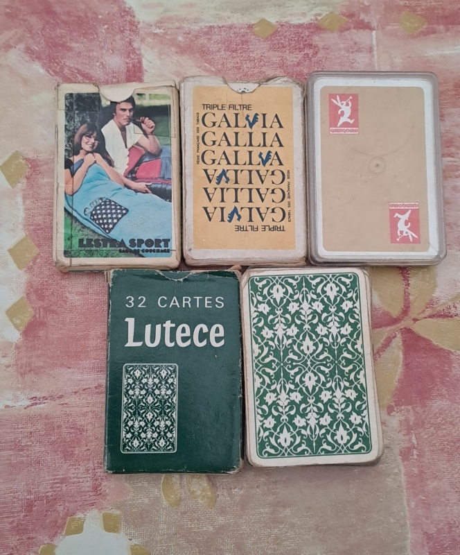 5 jeux de 32 cartes et 5 jeux de 52 cartes.